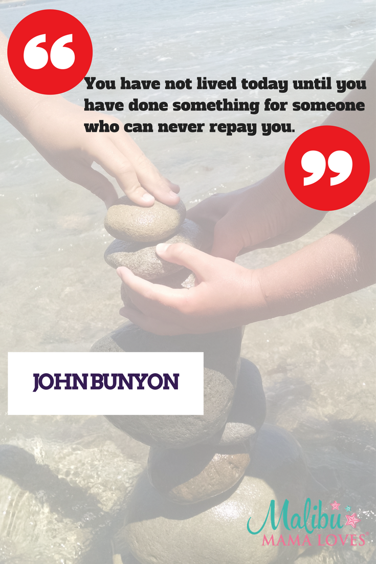 “You have not lived today until you’ve done something for someone who can never repay you.” By John Bunyon. This is the truth, yet we can get so caught up in the day-to-day give and take that we really forget why we are giving in the first place. Giving for the simple sake of doing something nice for someone else is the best feeling in the world. This quote helps me to remember that when life has caught me up!