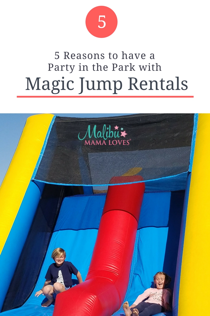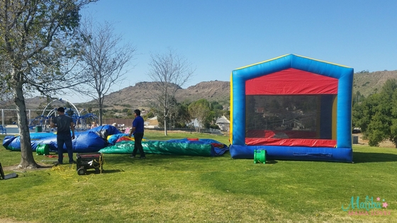 I contacted the Conejo Valley Parks and Rec to find out how this all works. They were incredibly kind and walked me through the whole thing. There are a few parks that you don’t need a permit for if you are under 50 people and some you do (you can find that list here). We wanted to have it at the Wildflower Park, which we didn’t need any permits for and Magic Jump Rentals is pre-approved to deliver to any park in the Conejo Valley Parks and Rec group so this was a super easy set up.