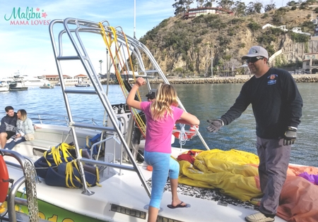 When I took my daughter to Catalina Island for our first mother daughter trip, we had the opportunity to go Parasailing with Island Water Charters and I could tell my daughter was super excited and wanting to try it. So, I said let’s do it!!